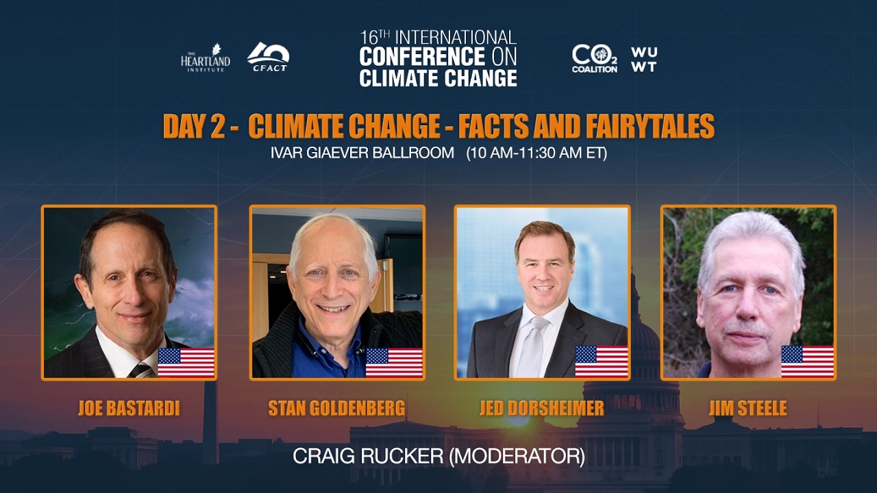Anthony Watts on “Corrupted Climate Stations and What to Do About Them”; Willie Soon on “Global warming: Mostly Human-caused or Mostly Natural?”; Joe Bastardi on “More Evidence Debunking CO2 as a Climate Control Knob”; Audience Q&A.